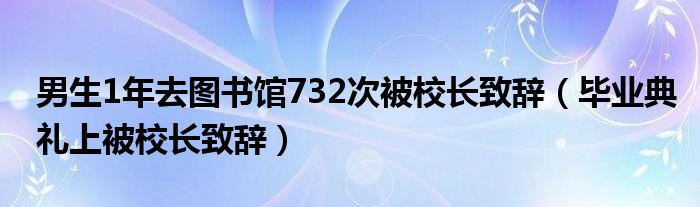 大家好,小高來(lái)為大家解答以上問(wèn)題。男生1年去圖書(shū)館732次被校長(zhǎng)致辭,畢業(yè)典禮上被校長(zhǎng)致辭很多人還不知道,現(xiàn)在讓我們一起來(lái)看看吧!