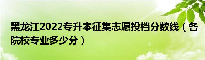 大家好,小高來為大家解答以上問題。黑龍江2022專升本征集志愿投檔分?jǐn)?shù)線,各院校專業(yè)多少分很多人還不知道,現(xiàn)在讓我們一起來看看吧!