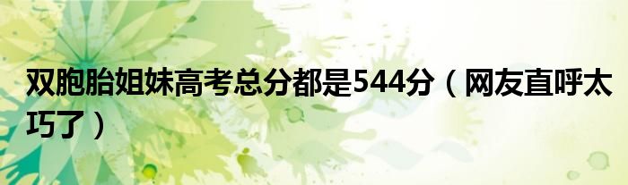 大家好,小高來(lái)為大家解答以上問(wèn)題。雙胞胎姐妹高考總分都是544分,網(wǎng)友直呼太巧了很多人還不知道,現(xiàn)在讓我們一起來(lái)看看吧!