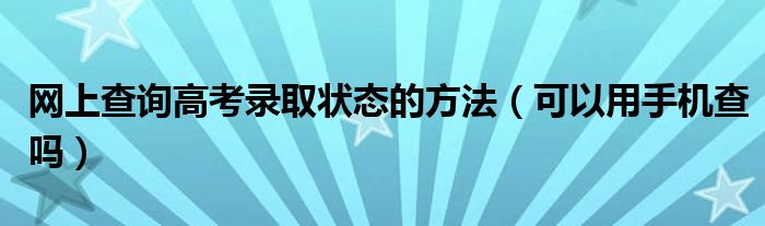 大家好,小高來為大家解答以上問題。網(wǎng)上查詢高考錄取狀態(tài)的方法,可以用手機(jī)查嗎很多人還不知道,現(xiàn)在讓我們一起來看看吧!