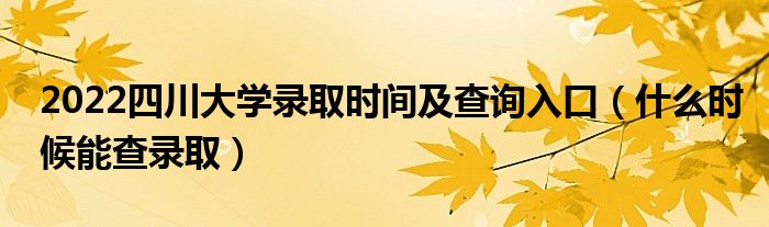 大家好,小高來為大家解答以上問題。2022四川大學錄取時間及查詢?nèi)肟?,什么時候能查錄取很多人還不知道,現(xiàn)在讓我們一起來看看吧!