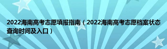 大家好,小高來為大家解答以上問題。2022海南高考志愿填報(bào)指南,2022海南高考志愿檔案狀態(tài)查詢時(shí)間及入口很多人還不知道,現(xiàn)在讓我們一起來看看吧!