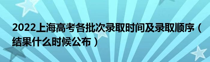 大家好,小高來為大家解答以上問題。2022上海高考各批次錄取時間及錄取順序,結(jié)果什么時候公布很多人還不知道,現(xiàn)在讓我們一起來看看吧!