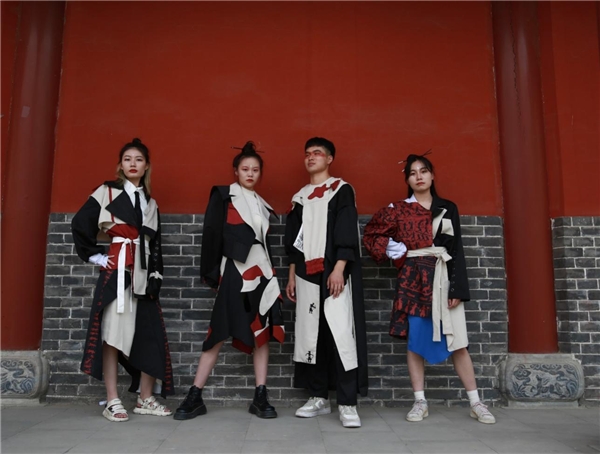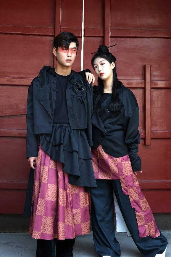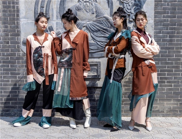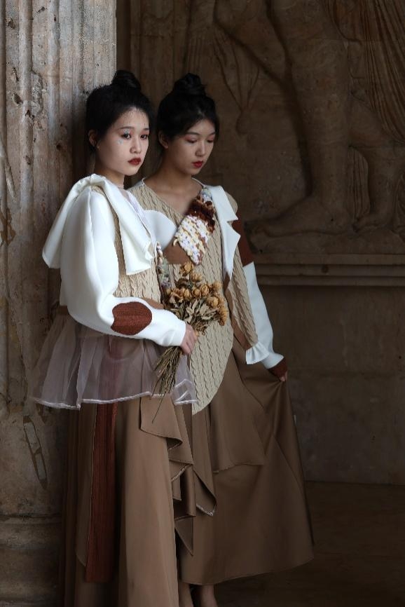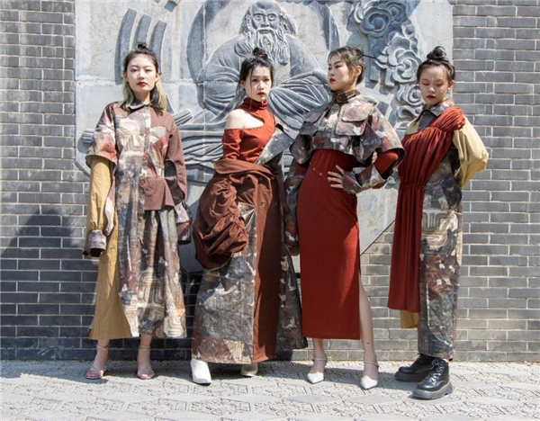 本次作品創(chuàng)作立足河北,融入京津冀,充分發(fā)揚地域文化。以“燕趙中山古國文化”和“太行紅色文化”為依托,進行視覺性,符號化的研究和創(chuàng)新。服裝色彩多以古樸色調(diào)和純色為主,面料從靈動的絲綢到舒適的棉麻,搭配古樸的皮革,都在傳遞著歷史的溫度和質(zhì)感,同時結(jié)合印染,刺繡,手工串珠等多種工藝再傳統(tǒng)文化之美。