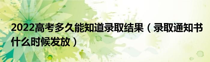 大家好,小高來為大家解答以上問題。2022高考多久能知道錄取結果,錄取通知書什么時候發(fā)放很多人還不知道,現(xiàn)在讓我們一起來看看吧!