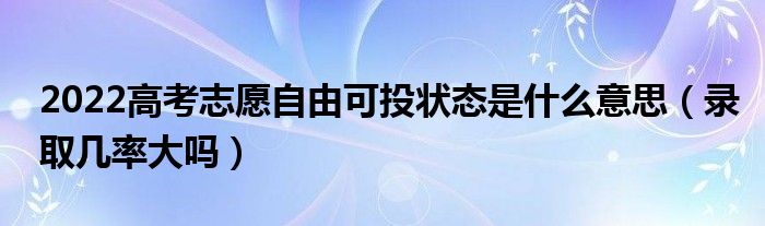 大家好,小高來(lái)為大家解答以上問(wèn)題。2022高考志愿自由可投狀態(tài)是什么意思,錄取幾率大嗎很多人還不知道,現(xiàn)在讓我們一起來(lái)看看吧!