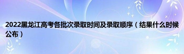 大家好,小高來為大家解答以上問題。2022黑龍江高考各批次錄取時間及錄取順序,結果什么時候公布很多人還不知道,現在讓我們一起來看看吧!