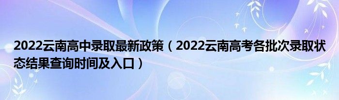 大家好,小高來為大家解答以上問題。2022云南高中錄取最新政策,2022云南高考各批次錄取狀態(tài)結(jié)果查詢時(shí)間及入口很多人還不知道,現(xiàn)在讓我們一起來看看吧!