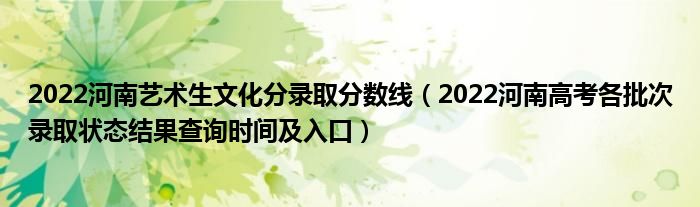 大家好,小高來為大家解答以上問題。2022河南藝術(shù)生文化分錄取分?jǐn)?shù)線,2022河南高考各批次錄取狀態(tài)結(jié)果查詢時(shí)間及入口很多人還不知道,現(xiàn)在讓我們一起來看看吧!