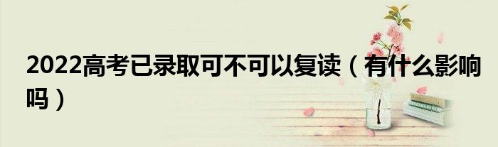 大家好,小高來為大家解答以上問題。2022高考已錄取可不可以復讀,有什么影響嗎很多人還不知道,現在讓我們一起來看看吧!