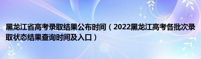 一、2022黑龍江高考錄取狀態(tài)查詢時間