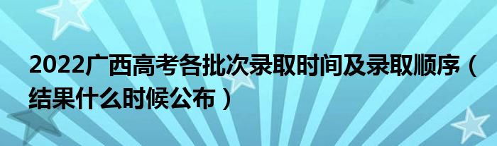 大家好,小高來(lái)為大家解答以上問(wèn)題。2022廣西高考各批次錄取時(shí)間及錄取順序,結(jié)果什么時(shí)候公布很多人還不知道,現(xiàn)在讓我們一起來(lái)看看吧!