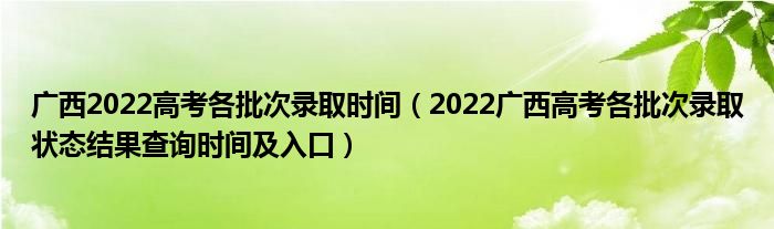 大家好,小高來為大家解答以上問題。廣西2022高考各批次錄取時間,2022廣西高考各批次錄取狀態(tài)結(jié)果查詢時間及入口很多人還不知道,現(xiàn)在讓我們一起來看看吧!