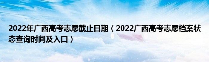 大家好,小高來(lái)為大家解答以上問(wèn)題。2022年廣西高考志愿截止日期,2022廣西高考志愿檔案狀態(tài)查詢時(shí)間及入口很多人還不知道,現(xiàn)在讓我們一起來(lái)看看吧!