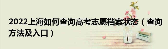 大家好,小高來為大家解答以上問題。2022上海如何查詢高考志愿檔案狀態(tài),查詢方法及入口很多人還不知道,現(xiàn)在讓我們一起來看看吧!