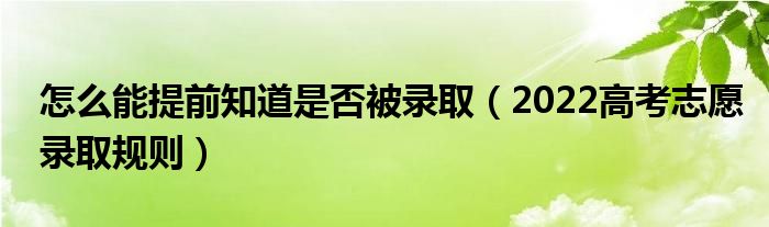 大家好,小高來為大家解答以上問題。怎么能提前知道是否被錄取,2022高考志愿錄取規(guī)則很多人還不知道,現(xiàn)在讓我們一起來看看吧!