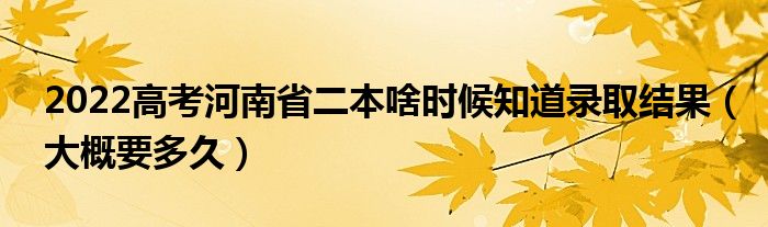 大家好,小高來為大家解答以上問題。2022高考河南省二本啥時(shí)候知道錄取結(jié)果,大概要多久很多人還不知道,現(xiàn)在讓我們一起來看看吧!