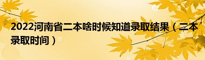 大家好,小高來為大家解答以上問題。2022河南省二本啥時候知道錄取結果,二本錄取時間很多人還不知道,現在讓我們一起來看看吧!