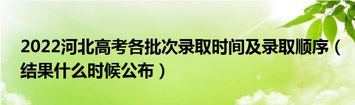 大家好,小高來為大家解答以上問題。2022河北高考各批次錄取時(shí)間及錄取順序,結(jié)果什么時(shí)候公布很多人還不知道,現(xiàn)在讓我們一起來看看吧!