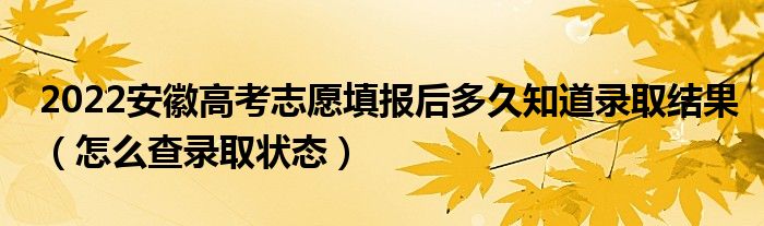大家好,小高來為大家解答以上問題。2022安徽高考志愿填報(bào)后多久知道錄取結(jié)果,怎么查錄取狀態(tài)很多人還不知道,現(xiàn)在讓我們一起來看看吧!