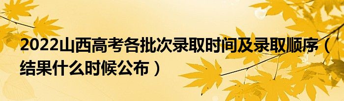 大家好,小高來為大家解答以上問題。2022山西高考各批次錄取時間及錄取順序,結(jié)果什么時候公布很多人還不知道,現(xiàn)在讓我們一起來看看吧!