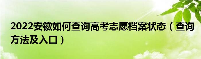 大家好,小高來(lái)為大家解答以上問(wèn)題。2022安徽如何查詢高考志愿檔案狀態(tài),查詢方法及入口很多人還不知道,現(xiàn)在讓我們一起來(lái)看看吧!