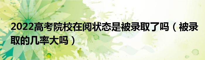大家好,小高來為大家解答以上問題。2022高考院校在閱狀態(tài)是被錄取了嗎,被錄取的幾率大嗎很多人還不知道,現(xiàn)在讓我們一起來看看吧!