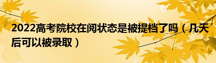 大家好,小高來(lái)為大家解答以上問(wèn)題。2022高考院校在閱狀態(tài)是被提檔了嗎,幾天后可以被錄取很多人還不知道,現(xiàn)在讓我們一起來(lái)看看吧!