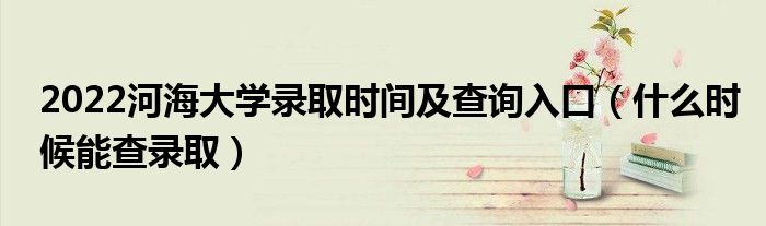 大家好,小高來為大家解答以上問題。2022河海大學(xué)錄取時間及查詢?nèi)肟冢裁磿r候能查錄取很多人還不知道,現(xiàn)在讓我們一起來看看吧!