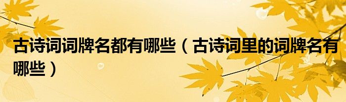 大家好,小高來為大家解答以上問題。古詩詞詞牌名都有哪些,古詩詞里的詞牌名有哪些很多人還不知道,現(xiàn)在讓我們一起來看看吧!