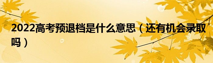 大家好,小高來(lái)為大家解答以上問(wèn)題。2022高考預(yù)退檔是什么意思,還有機(jī)會(huì)錄取嗎很多人還不知道,現(xiàn)在讓我們一起來(lái)看看吧!