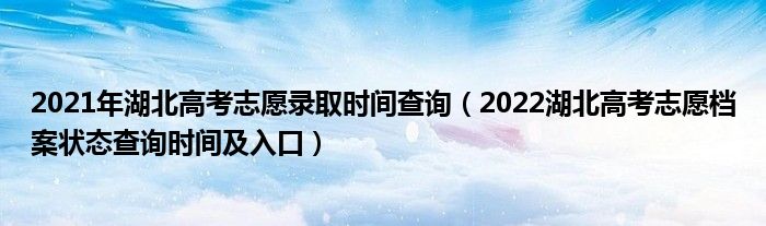 大家好,小高來為大家解答以上問題。2021年湖北高考志愿錄取時(shí)間查詢,2022湖北高考志愿檔案狀態(tài)查詢時(shí)間及入口很多人還不知道,現(xiàn)在讓我們一起來看看吧!