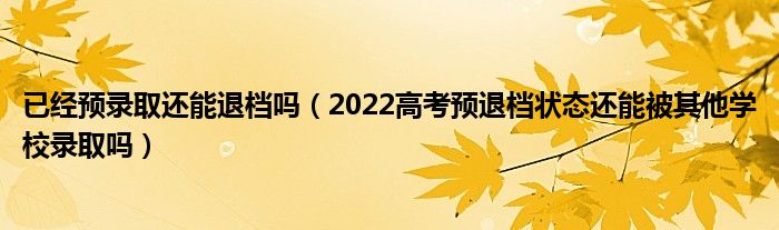 大家好,小高來為大家解答以上問題。已經(jīng)預(yù)錄取還能退檔嗎,2022高考預(yù)退檔狀態(tài)還能被其他學(xué)校錄取嗎很多人還不知道,現(xiàn)在讓我們一起來看看吧!