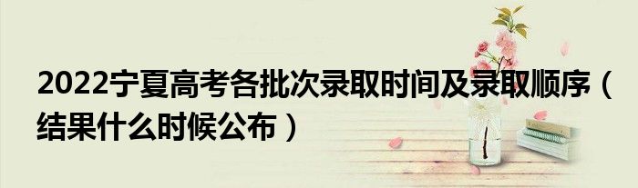 大家好,小高來為大家解答以上問題。2022寧夏高考各批次錄取時間及錄取順序,結果什么時候公布很多人還不知道,現(xiàn)在讓我們一起來看看吧!