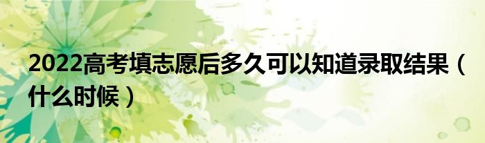 大家好,小高來為大家解答以上問題。2022高考填志愿后多久可以知道錄取結(jié)果,什么時(shí)候很多人還不知道,現(xiàn)在讓我們一起來看看吧!