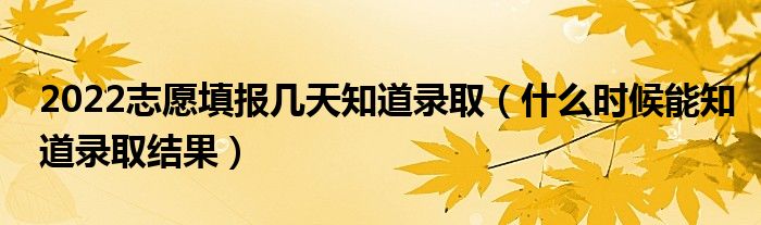 大家好,小高來為大家解答以上問題。2022志愿填報(bào)幾天知道錄取,什么時(shí)候能知道錄取結(jié)果很多人還不知道,現(xiàn)在讓我們一起來看看吧!