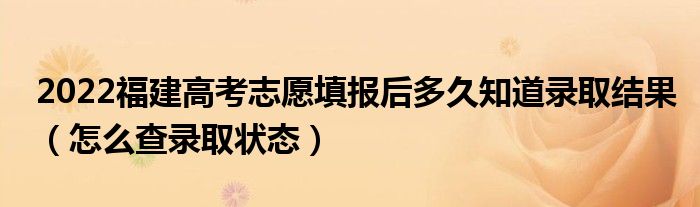 大家好,小高來為大家解答以上問題。2022福建高考志愿填報后多久知道錄取結(jié)果,怎么查錄取狀態(tài)很多人還不知道,現(xiàn)在讓我們一起來看看吧!