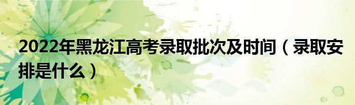 大家好,小高來為大家解答以上問題。2022年黑龍江高考錄取批次及時間,錄取安排是什么很多人還不知道,現(xiàn)在讓我們一起來看看吧!