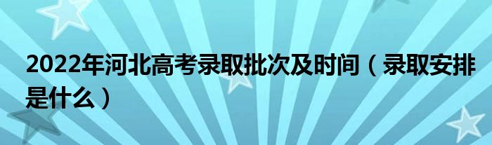 大家好,小高來(lái)為大家解答以上問(wèn)題。2022年河北高考錄取批次及時(shí)間,錄取安排是什么很多人還不知道,現(xiàn)在讓我們一起來(lái)看看吧!