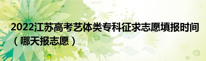 大家好,小高來為大家解答以上問題。2022江蘇高考藝體類??普髑笾驹柑顖髸r間,哪天報志愿很多人還不知道,現在讓我們一起來看看吧!