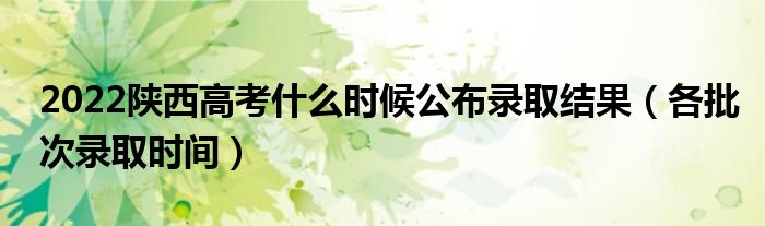 大家好,小高來為大家解答以上問題。2022陜西高考什么時候公布錄取結果,各批次錄取時間很多人還不知道,現(xiàn)在讓我們一起來看看吧!