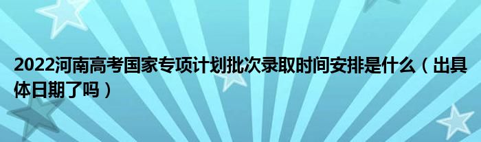 大家好,小高來(lái)為大家解答以上問(wèn)題。2022河南高考國(guó)家專項(xiàng)計(jì)劃批次錄取時(shí)間安排是什么,出具體日期了嗎很多人還不知道,現(xiàn)在讓我們一起來(lái)看看吧!