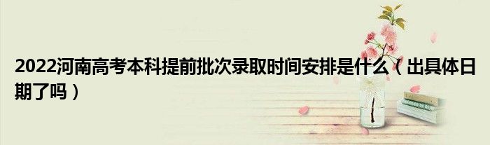 大家好,小高來(lái)為大家解答以上問題。2022河南高考本科提前批次錄取時(shí)間安排是什么,出具體日期了嗎很多人還不知道,現(xiàn)在讓我們一起來(lái)看看吧!