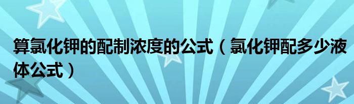 大家好,小生來(lái)為大家講解下。算氯化鉀的配制濃度的公式,氯化鉀配多少液體公式很多人還不知道,現(xiàn)在讓我們一起來(lái)看看吧!