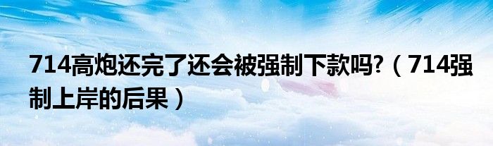 大家好,小生來為大家講解下。714高炮還完了還會被強制下款嗎?,714強制上岸的后果很多人還不知道,現(xiàn)在讓我們一起來看看吧!
