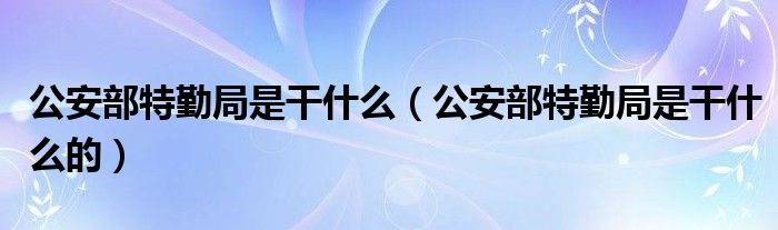 大家好,小生來為大家講解下。公安部特勤局是干什么,公安部特勤局是干什么的很多人還不知道,現(xiàn)在讓我們一起來看看吧!