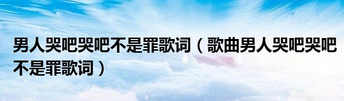 大家好,伊人來(lái)為大家解答以上問(wèn)題。男人哭吧哭吧不是罪歌詞,歌曲男人哭吧哭吧不是罪歌詞很多人還不知道,現(xiàn)在讓我們一起來(lái)看看吧!
