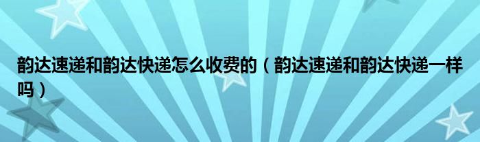 大家好,小生來為大家講解下。韻達(dá)速遞和韻達(dá)快遞怎么收費(fèi)的,韻達(dá)速遞和韻達(dá)快遞一樣嗎很多人還不知道,現(xiàn)在讓我們一起來看看吧!