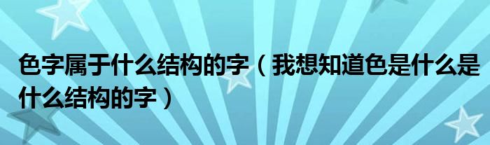大家好,小生來為大家講解下。色字屬于什么結(jié)構(gòu)的字,我想知道色是什么是什么結(jié)構(gòu)的字很多人還不知道,現(xiàn)在讓我們一起來看看吧!