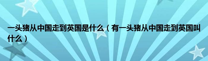 大家好,小生來為大家講解下。一頭豬從中國走到英國是什么,有一頭豬從中國走到英國叫什么很多人還不知道,現(xiàn)在讓我們一起來看看吧!